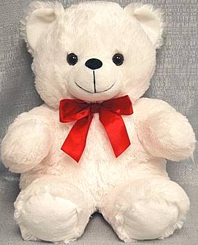 13.5" Sitting White Bear with Red Ribbon
