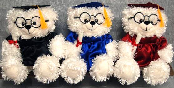 Florist/Hospital Quality Plush, Stuffed Animal Graduation, Bears, Dogs, Tiger with Eye Glass, Caps, Gown, Deploma All Sitting Animal Measured In Factory Size "Butt To Head" If measure from the top of the ear to the bottom of a foot it will be considerably larger than our posted sizes. |